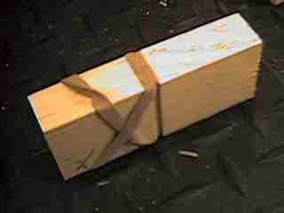 Cross the rubber band around the paddle.