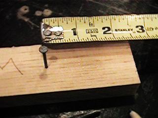 Drive a nail part way into the arm 2-1/2" from the end. This goes on the same side as the pivot block.