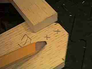 Put two marks on the end where the handle will be nailed in place.