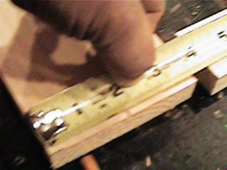 Mark the middle of the center boardMeasure from one side to the middle of the center board. This is 1-3/4". You can measue from both sides to check, both marks should be in the smae place. If the marks are diffrent the middle will be between them. |